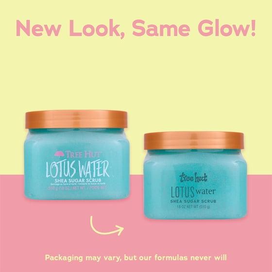 - Tree Hut Lotus Water Shea Sugar Scrub gently exfoliates to remove dull, dead skin to reveal soft, smooth skin