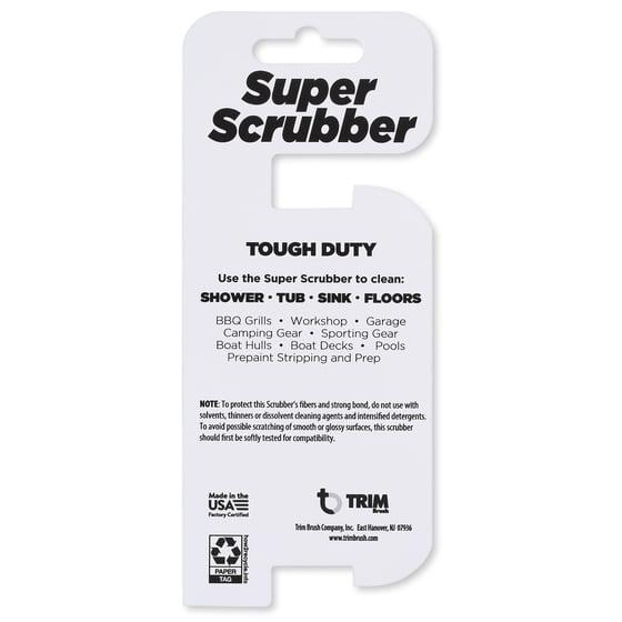 Perform tough cleaning jobs indoors and outdoors with this Trim Brush Super Scrubber Scrub Brush. The Scrubber's durable mesh weave cleans quickly to scrub away grime and build up in grout and hard to clean areas. The comfortable handle helps make tough cleaning jobs easier. Use in the bathroom to clean the shower, tub, sink and floors. Use outdoors on the deck, patio, cement flooring and pool. This multi-use Scrubber can also be used to maintain barbecues, railings, boat hulls, garden and shop tools, sporting gear, and camping equipment.
