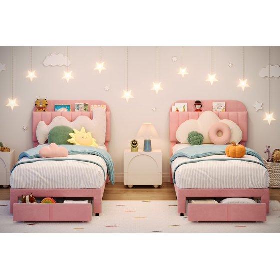 Comfortable & Practical Bookcase Headboard: Designed with soft sponge for added comfort during bedtime stories and relaxation, this upholstered bed frame with storage headboard includes two open storage cubbies for easy access to books and toys, promoting organization and encouraging reading skills