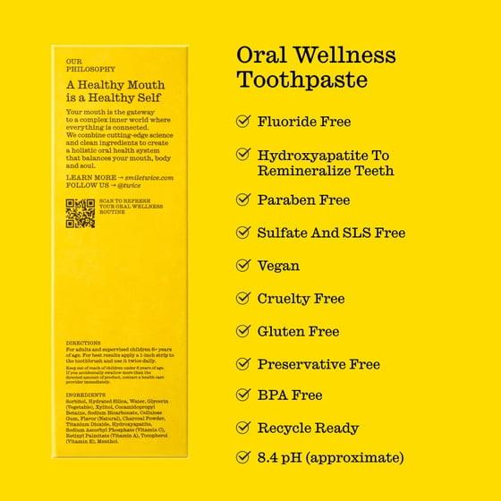 - Smile Twice Oral Wellness Toothpaste is created with top dentists