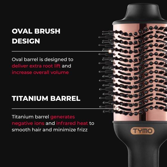The TYMO Volumizer Hot Air Brush is a professional one-step hot air brush that can be used as a blow dryer, volumizer, straightener, and curler. It features a titanium barrel and iONIC technology to create volume at the root and sleekness along the hair shaft; while a mix of long and short bristles detangle, smooth, and minimize breakage. The titanium coated barrel protects hair from over-styling and the millions of negative ions reduce frizz and static. The patented bristle design has short-tufted bristles to add extra lift and help detangle hair and the nylon pin bristles provide anti-scald protection while massaging the scalp. The 1200W powerful motor efficiently dries wet hair and the 360° vent offers a 50% bigger drying area to dry hair fast and create salon long-lasting hairstyles in minutes. Various temperatures range from 115°F to 210°F for styling flexibility. The three settings are low heat with high speed, medium heat with low speed, and high heat with high speed. The Volumizer has a 360° swivel cord for convenience and ease of use. The TYMO Volumizer Hot Air Brush will deliver salon styles in minutes with volume from root to tip.