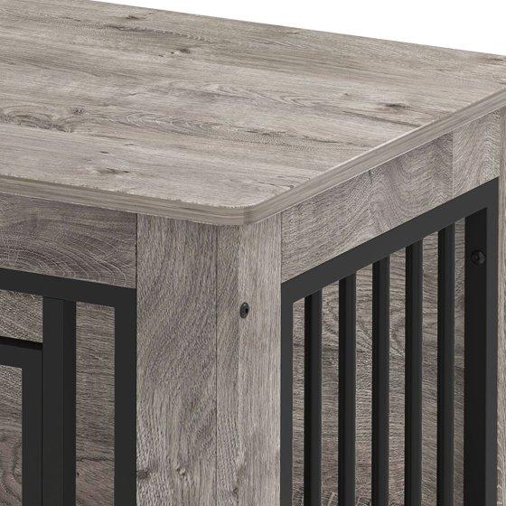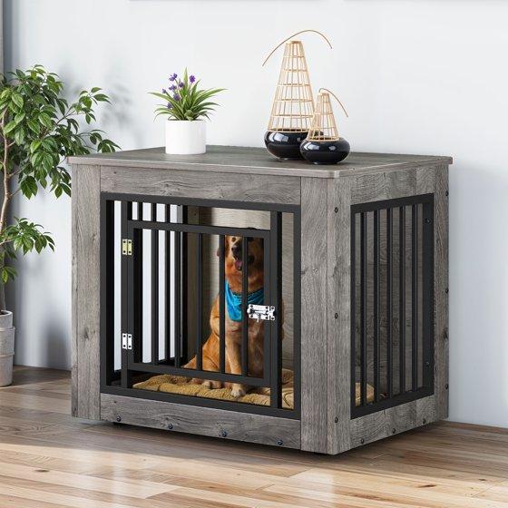Uforic 2-in-1 Dog Crate Furniture, 30 in Iron-Wood Indoor Dog Cage Table with Steel Lock & Waterproof Top,Gray