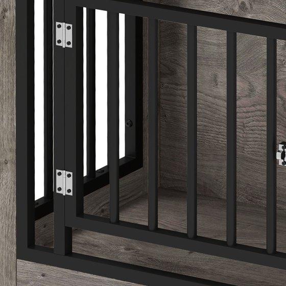 Blending rustic charm with modern function, this iron-wood dog crate doubles as a chic side table while offering a secure, cozy space for medium dogs up to 35 lbs. Built with durable steel tubing and chipboard, it features a bite-resistant lock, adjustable feet for stability, and pet-safe design details like rounded corners and a waterproof top, ideal for stylish, space-saving living.