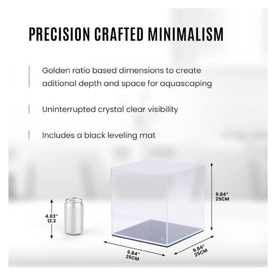 Ultra Clear Rimless Aquarium - Low Iron Glass Fish with 45° Mitered Edges, 5mm-12mm Thick, Leveling Mat Included (25C, Cube, 4 Gallon)