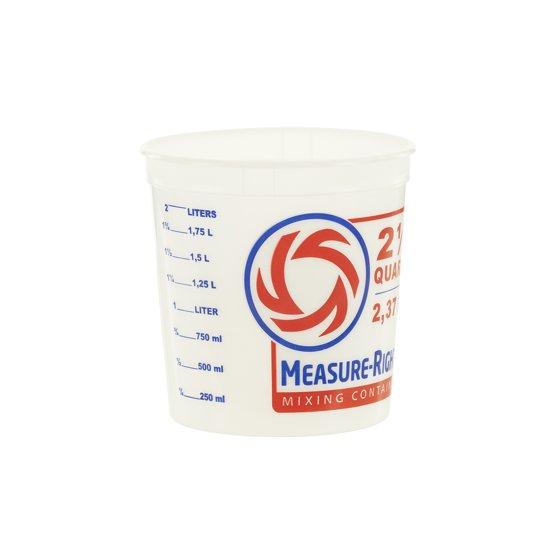 The United Solutions 2.5 Quart Round Measure Right Pre-Marked Plastic Mixing Container makes measuring and mixing easy. This 2.5-quart container has clearly marked and easy to read measurements in both ounces and quarts. This pre-marked container will allow exact content measurements every time. This quality mixing container is made of solvent-resistant plastic. No worries about chemical corrosion or potential harsh environmental exposures when using this sturdy and safe mixing container. Mix paints, pastes, adhesives and solvents safely and easily. This round plastic mixing container features a flat bottom, clearly marked measurements, and is a trouble-free multi-usage container.