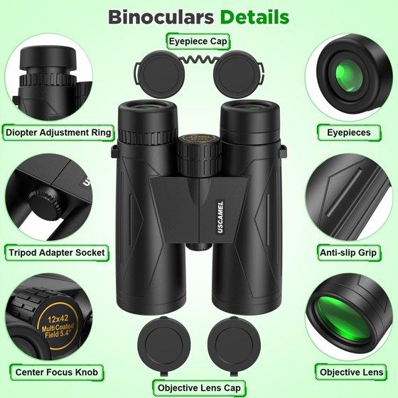 USCAMEL 12x42 Binoculars for Adults Kids, HD Binoculars Waterproof FMC BAK4 Binoculars Low Light Night Vision for Bird Watching Travel Hunting Outdoor Sports Concerts