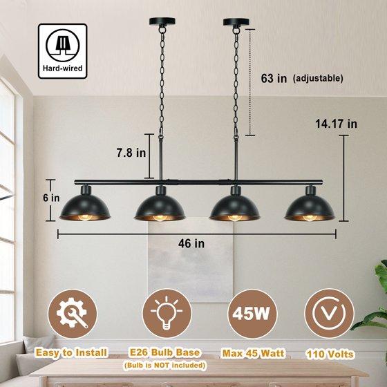UZNHTY Pool Table Light 4-Lights Billiard Light 46" Pool Table Lights Hanging Over Pool Table Kitchen Island Lighting Hanging Light Fixtures Matt Black