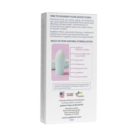 VagiBiom Probiotic Suppositories support intimate health with a dual-action formula that combines probiotics, prebiotics, and natural ingredients like hyaluronic acid, D-mannose, and lactoferrin. This formula helps restore a healthy vaginal microbiome, balance pH levels, and support urinary tract health. Each suppository works to reduce odor, discharge, itching, and irritation. The soothing formula also moisturizes and protects sensitive tissues. Perfect for daily feminine care, these suppositories promote comfort, confidence, and overall vaginal and urinary wellness. Includes 10 individually wrapped suppositories for safe, hygienic use.
