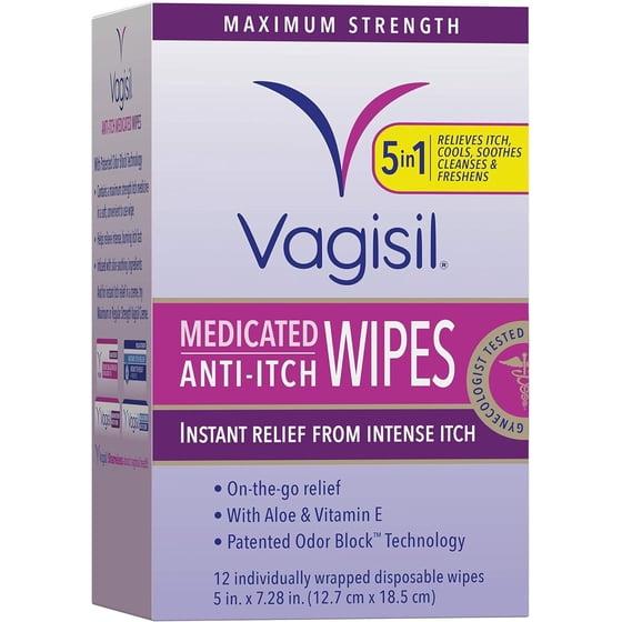 - Includes 12 individually wrapped disposable Vagisil Maximum Strength Anti-itch medicated feminine wipes.
