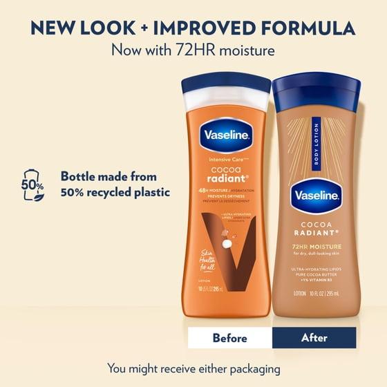 - FOR A LONG-LASTING GLOW: Vaseline Intensive Care Cocoa Radiant Lotion for dry skin moisturizes skin for a long-lasting, radiant glow