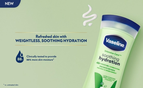 - FOR WEIGHTLESS HYDRATION: Vaseline Intensive Care Soothing Hydration Lotion with Ultra Hydrating Lipids and Aloe Vera Extract moisturizes, refreshes, and soothes dry, dehydrated skin