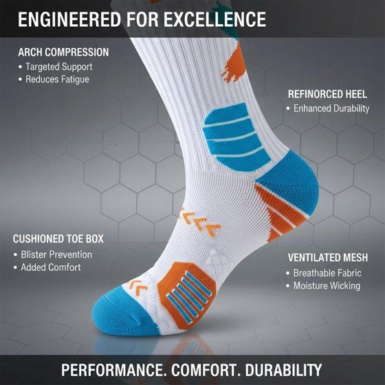 - Moisture-wicking technology keeps feet dry and odor-resistant.