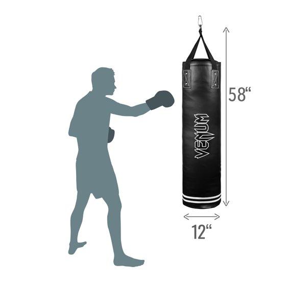 This boxing heavy bag is incredibly durable and easy to assemble, the Venum 100 lbs classic black/white heavy bag kit is perfectly suited for boxing workouts at home. Safely practice your striking, and work on your agility, cardio and defensive skills. With our heavy bag hanging mount system you are able to safely install this bag in a variety of locations around the home. This is a filled bag to ensure the long-lasting shape and durability of the bag. The Venum classic boxing punching bag will not deform over time due so you can perfect your striking without worry.