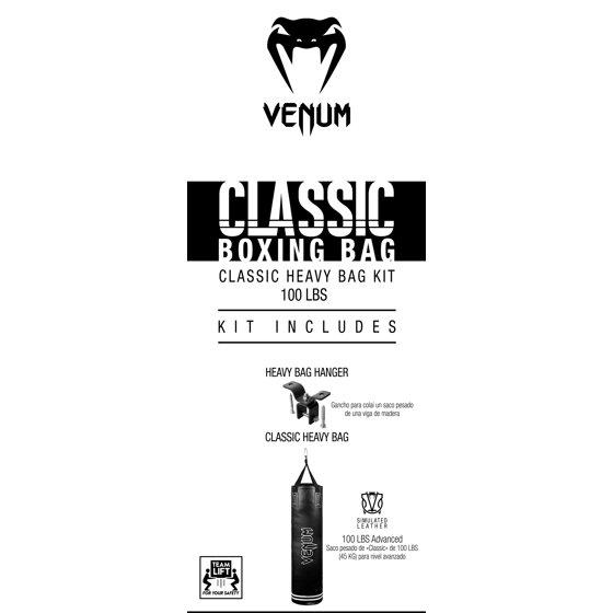 Venum Classic Boxing Punching Bag - 100 lbs - Black/White - Heavy Bag Kit