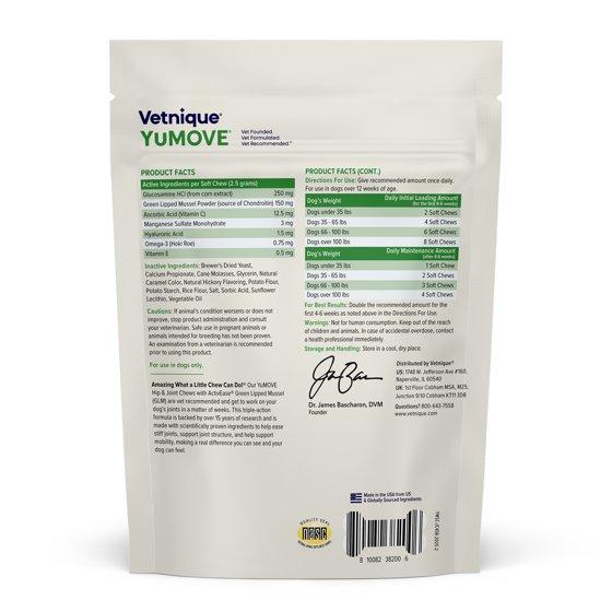 Vetnique YuMOVE Hip & Joint Chews, for Dogs with Glucosamine, Barbecue Flavored, 60ct