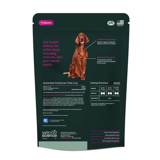 - Daily Probiotic support: Each chew contains 1 billion CFUs of probiotics & prebiotics.