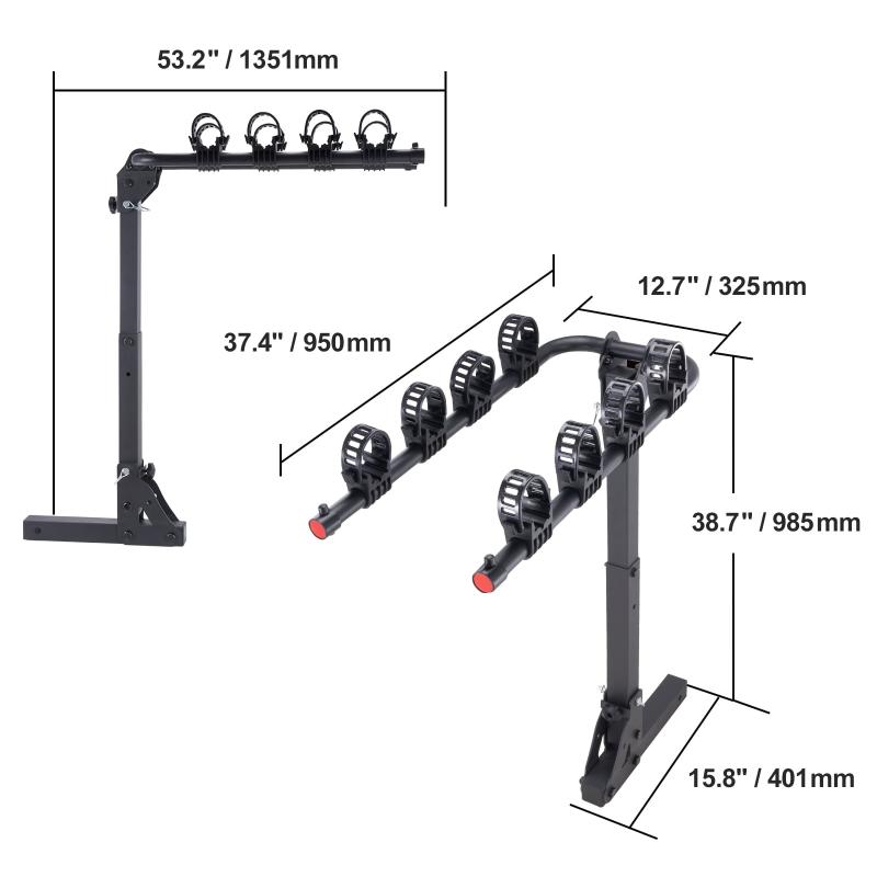 - 150 LBS Max Weight Capacity: Our hitch bike rack is made of heavy-duty steel that can handle up to 150 lbs weight. Each rack can carry up to 37.5 lbs; the 4-bike rack hitch mount is perfect for most mountain and off-road bikes.