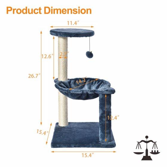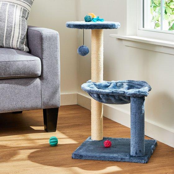 - Vibrant Life 3-Level Cat Tower with Hammock and Sisal Post, 26.7 inch, Blue