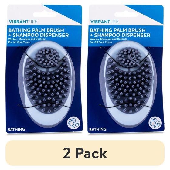 - Vibrant Life Bathing Palm Dog Cat Pet Brush + Shampoo Dispenser Grooming Tool Hand Brush perfect tool to clean your pet's hair during bath time.