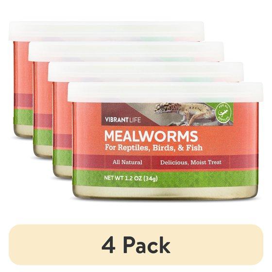 (4 pack) Vibrant Life Canned Mealworms for Reptiles, Birds & Fish, 1.2 oz