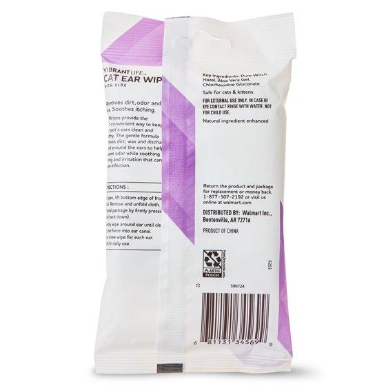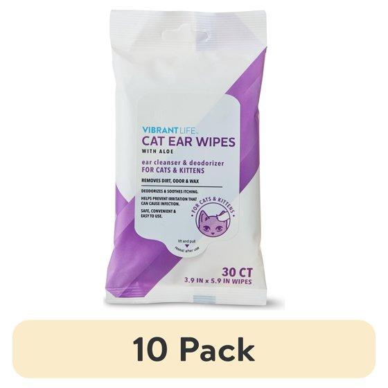 (10 pack) Vibrant Life Cat Ear Wipes with Aloe, 30 Count. Cat Ear Care Type of Wipe.
