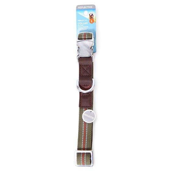 Vibrant Life Comfort Premium Reflective Dog Collar, Metal Buckle, Olive Green, Small