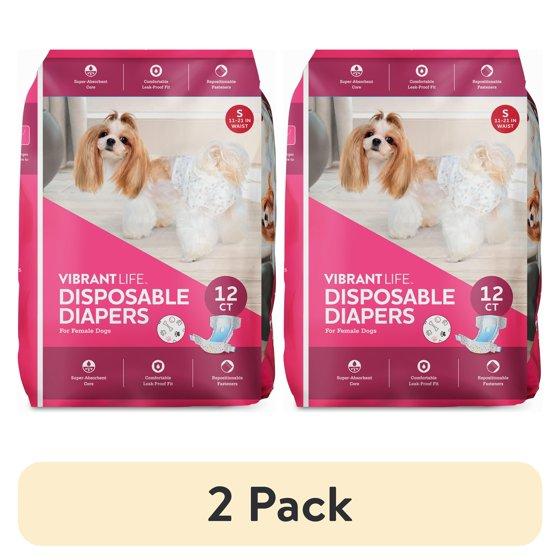 (2 pack) Vibrant Life Disposable Dog Diapers for Female Dogs, S, 12 Count