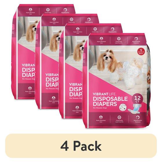 (4 pack) Vibrant Life Disposable Dog Diapers for Female Dogs, S, 12 Count