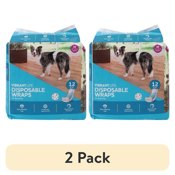 (2 pack) Vibrant Life Disposable Dog Wraps for Male Dogs, M, 12 Count