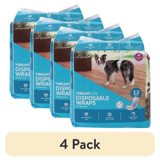 (4 pack) Vibrant Life Disposable Dog Wraps for Male Dogs, M, 12 Count