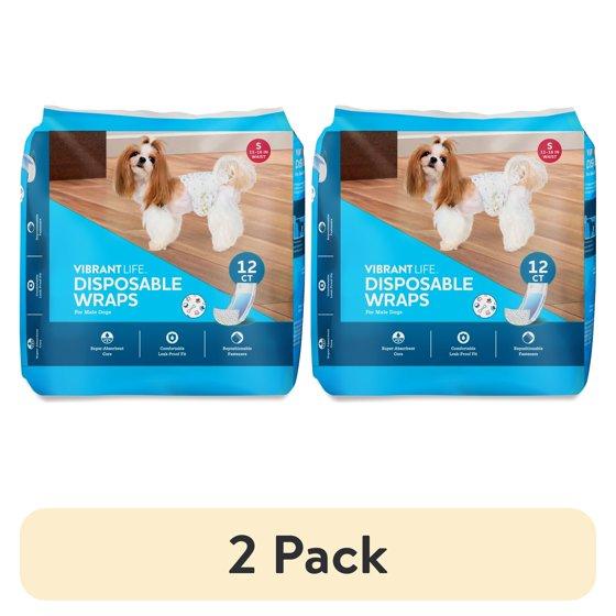(2 pack) Vibrant Life Disposable Dog Wraps for Male Dogs, S, 12 Count