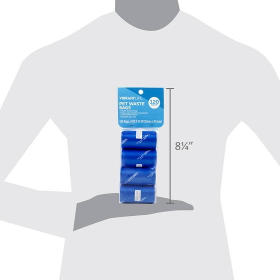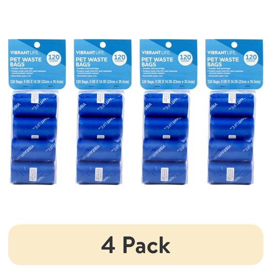 (4 pack) Vibrant Life Dog Waste Bags Refills, Total 120 Count on 8 rolls, Blue, 9" x 14"