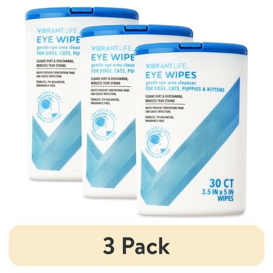 (3 pack) Vibrant Life Eye Wipes for Cats & Dogs, 30 Count Eye Cleanser, Tear Stain Remover.