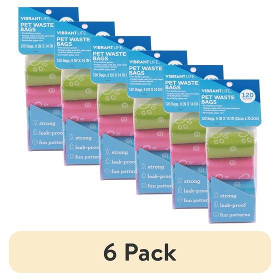 (6 pack) Vibrant Life Fashion Waste Pick up Bags for Dogs, Blue, 120 Ct.
