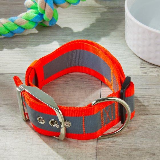 - Vibrant Life Hunter Orange Extra Wide Adjustable Reflective Collar for Dogs, Large