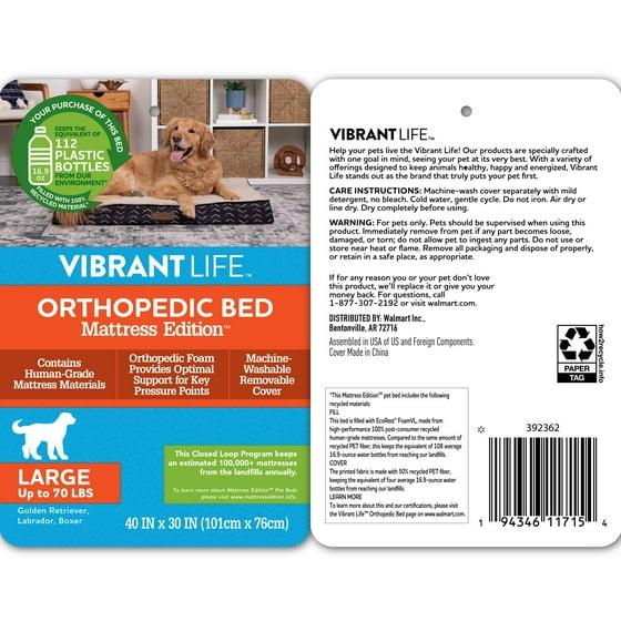 (2 pack) Vibrant Life Orthopedic Mattress Edition Pet Bed, Large 40" x 30", Comfort for Dogs Up to 70 lbs