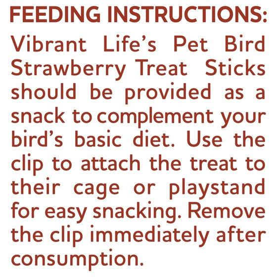 Vibrant Life Parakeet Strawberry Treat Sticks are a tasty and nutritious addition to your bird's diet that will keep them happy, engaged, and healthy. Delight your feathered friends with our 2-pack strawberry treat sticks, specially crafted for pet birds! These crunchy, flavorful sticks are packed with the irresistible taste of real strawberries, making them a perfect reward that your avian companions will love. Made from high-quality, natural ingredients, our treat sticks not only satisfy your bird's cravings but also promote healthy chewing and beak maintenance. Each Vibrant Life Parakeet Strawberry Treat Stick is designed for easy gripping, encouraging your birds to nibble, peck, and enjoy their treat to the fullest.