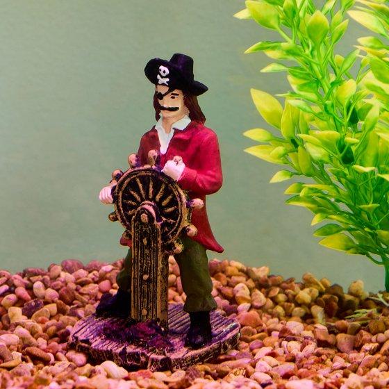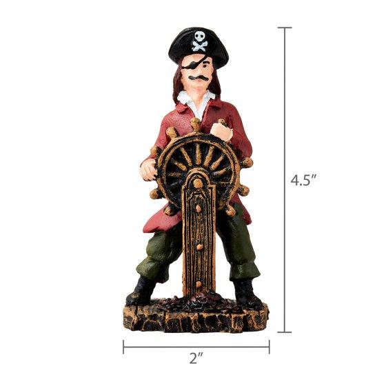 Set sail for underwater fun with the Vibrant Life Pirate Aquarium Decor! This adventurous ornament features a classic pirate captain at the ship’s wheel, bringing character and charm to your fish tank. At 4.25 inches tall, it’s perfectly sized for most freshwater aquariums and adds a playful touch to your underwater theme. Made from aquarium-safe materials, it’s designed to stand up to daily tank life while giving your fish an exciting spot to explore. Whether you're creating a full pirate scene or just want to add some personality, this Vibrant Life Pirate Aquarium Decor is ready to steer your tank into fun territory.