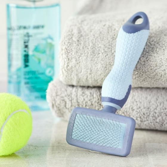 Vibrant Life Plastic Dog Slicker Grooming Brush with a TPR Grip