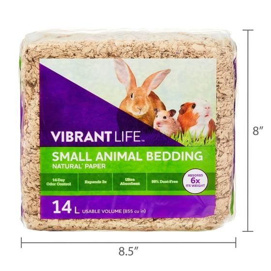 Give your furry friend the coziest comfort with the Vibrant Life Small Animal Bedding! Designed with love for small pets like hamsters, guinea pigs, rabbits, and gerbils, this bedding creates a soft, safe, and super-absorbent nest they'll love to burrow into. Made from premium natural brown paper, it delivers excellent odor control and moisture absorption, keeping your pet's habitat clean and fresh. It's 99.9 percent dust-free, helping keep your space clean while giving you easier cleanup. With a usable volume of 14 liters (885 cubic inches), this bedding offers long-lasting performance that both you and your pet will appreciate. Whether it's nap time or play time, your little buddy will feel right at home with the Vibrant Life Small Animal Bedding!