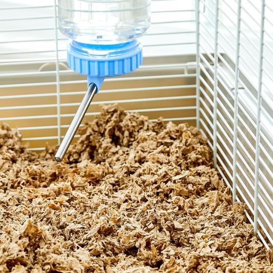 Cover fage floor with 2-3 inches of loose bedding. Change bedding at lease once a week, remove all bedding and clean enclosure. Always replace bedding with fresh product and discard old. A clean cage will help keep your pet clean and safe from developing respiratory problems due to ammonia buildup.
