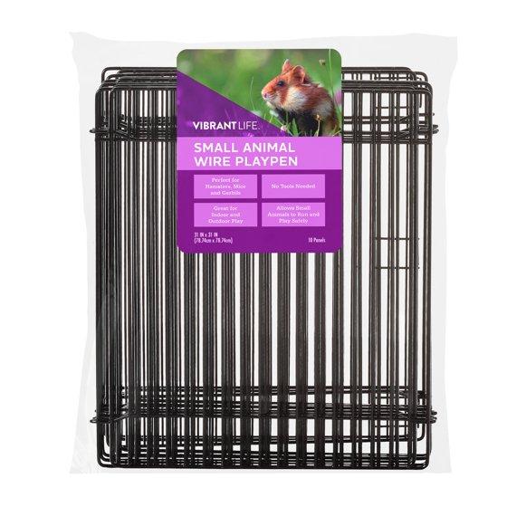 - Vibrant Life Small Animal Metal Wire Foldable Playpen, Black, 10" x 9", 10 Panels
