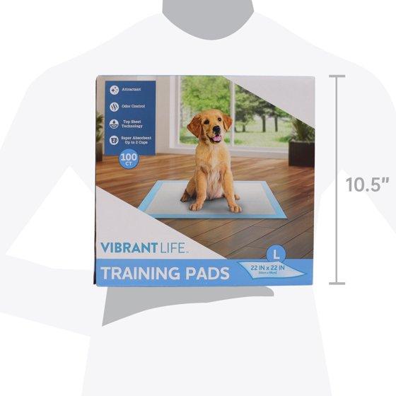 Vibrant Life Training Pads – Super Absorbent, Leak Proof, & Fast Dry Dog and Puppy Pee Pads – L 22 in x 22 in, 100 Count