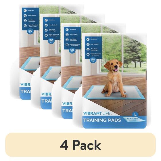 (4 pack) Vibrant Life Training Pads – Super Absorbent, Leak Proof, & Fast Dry Dog and Puppy Pee Pads – L 22 in x 22 in, 50 Count