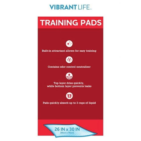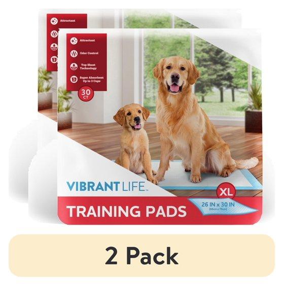 (2 pack) Vibrant Life Training Pads – Super Absorbent, Leak Proof, & Fast Dry Dog and Puppy Pee Pads – XL 26 in x 30 in, 30 Count