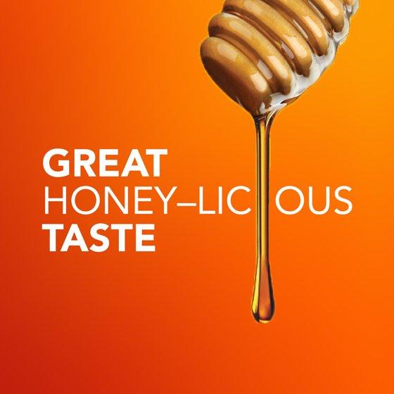 When a cold comes on strong, knock it out with Vicks DayQuil SEVERE Honey Flavor Cold & Flu Liquid medicine. Just one dose of this over-the-counter medicine starts working fast to relieve 9 of your worst cold and flu symptoms, to help take you from 9 to none. Flavored with real honey, the Vicks DayQuil SEVERE Honey liquid adult formula provides fast, powerful, maximum strength daytime relief for your worst cold & flu symptoms. From the world's #1 selling OTC cough and cold brand, Vicks DayQuil SEVERE Honey provides powerful, maximum strength 9-symptom relief to treat coughing, stuffy nose, minor body pain, chest congestion, sinus congestion, sinus pressure, sore throat, headache, and fever. Use when you need fast, non-drowsy daytime relief for your ugliest, roughest, toughest cold symptoms so you can get on with your day. Nothing works faster. Use to temporarily relieve common cold/flu symptoms, including to thin & loosen bothersome mucus. Vicks has been trusted for over 125 years to relieve your cold and flu symptoms. DayQuil is the #1 pharmacist recommended daytime cough, cold & flu brand*Active ingredients per 30 mL dose for adults are acetaminophen 650 mg (pain reliever/fever reducer), dextromethorphan HBr 20 mg (cough suppressant), guaifenesin 400 mg (expectorant/thins and loosens mucus), and phenylephrine HCI 10 mg (nasal decongestant). Store at room temperature; do not refrigerate. Take only as directed. Use only the dose cup provided. Do not exceed 4 doses per 24 hours.*2022 Pharmacy Times Survey of Pharmacists OTC Recommendations Nicholas Hall's global CHC sales database, DB20