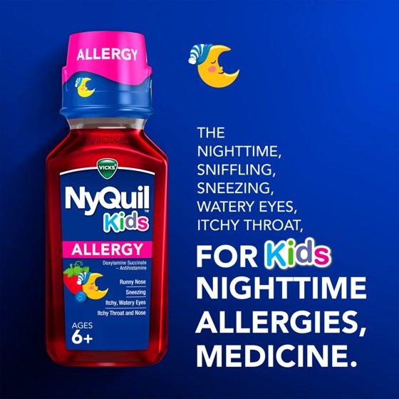 • POWERFUL ALLERGY SYMPTOM RELIEF FOR KIDS. NyQuil Kids Allergy Liquid provides fast and effective relief.