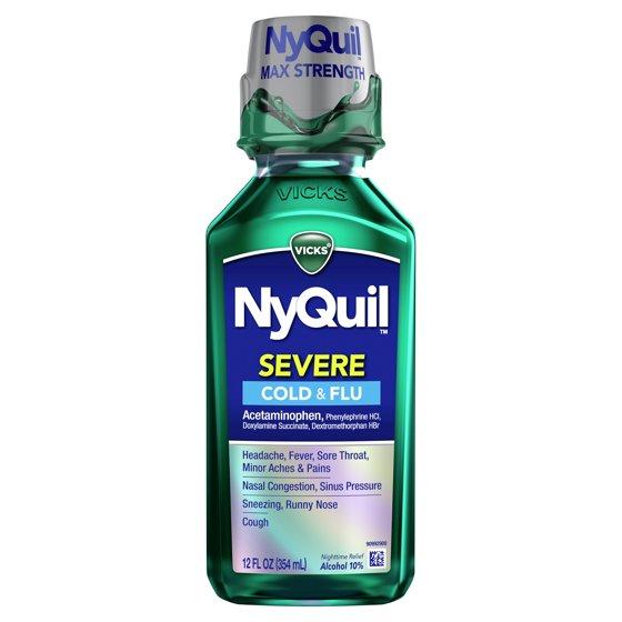 - POWERFUL NIGHTTIME COLD & FLU RELIEF. NyQuil SEVERE temporarily relieves common cold & flu symptoms so you can get the rest you need