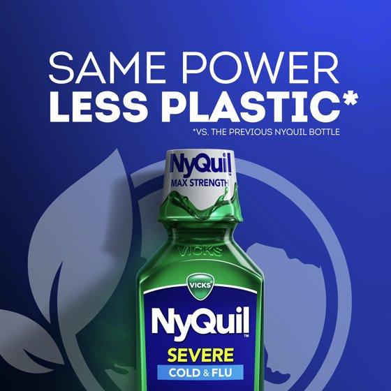 Vicks NyQuil Severe Cold and Flu Liquid, Cold and Flu Medicine for Adults, Original, 12 fl oz