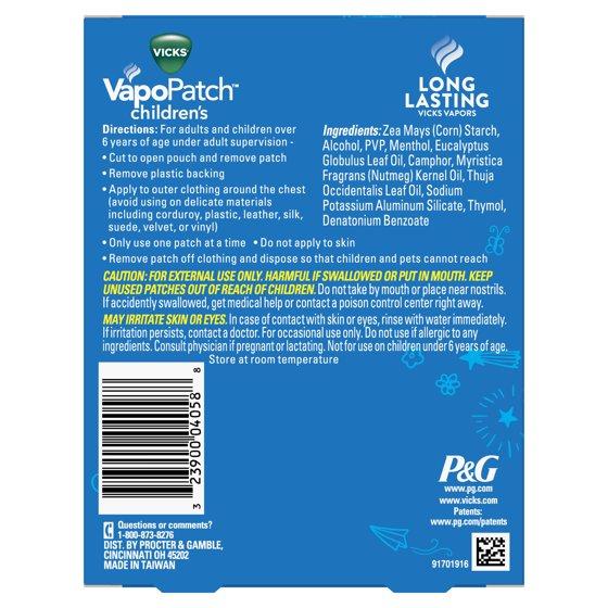 - Vicks VapoPatch with Long Lasting Soothing Vicks Vapors for Children Ages 6+, 5 Count